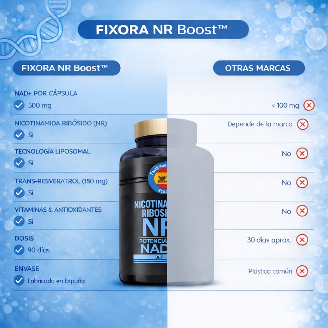 Fixora NR Boost™ NAD+ ha sido diseñado para quienes quieren recuperar su energía diaria con una fórmula limpia, moderna y científicamente respaldada